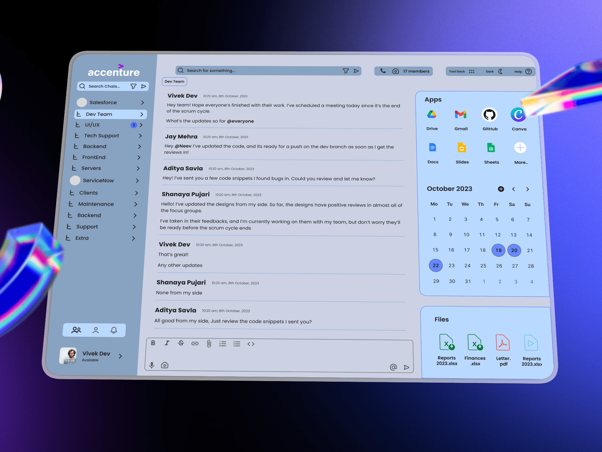 While informal communication tools like WhatsApp and Discord excel in accessibility, they fall short for enterprise use due to limitations around security, access control, and data traceability. On the other hand, professional tools often introduce complexity that affects usability and discoverability. The challenge was to design a communication platform that balances professionalism, security, and seamless collaboration.